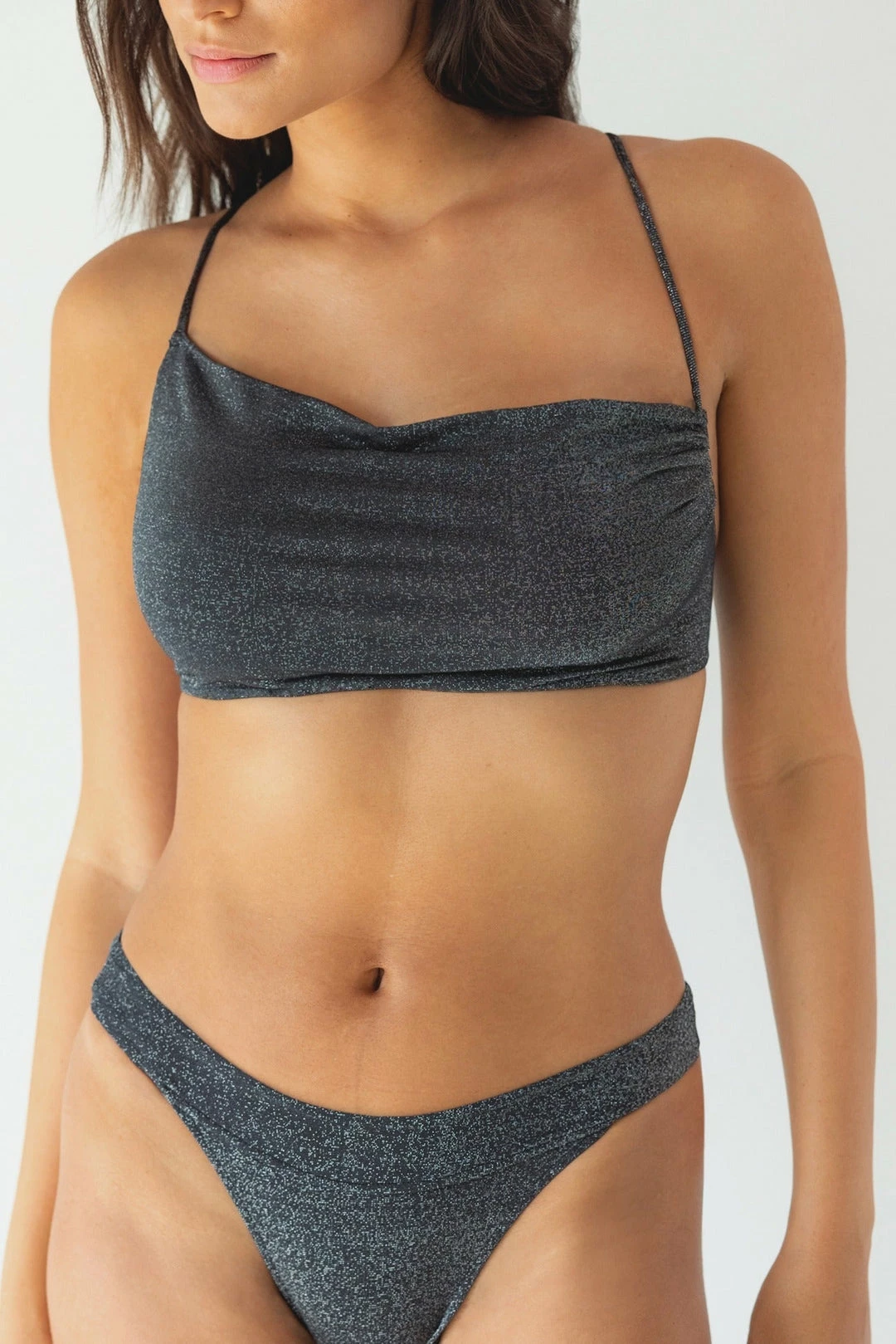 The Dupont Top brings the luxury of evening wear poolside. Our iridescent lurex fabric drapes along the neckline, bringing just the right movement to this top to showcase its shimmer. Looking for a one piece? Check out the Dupont One Piece.