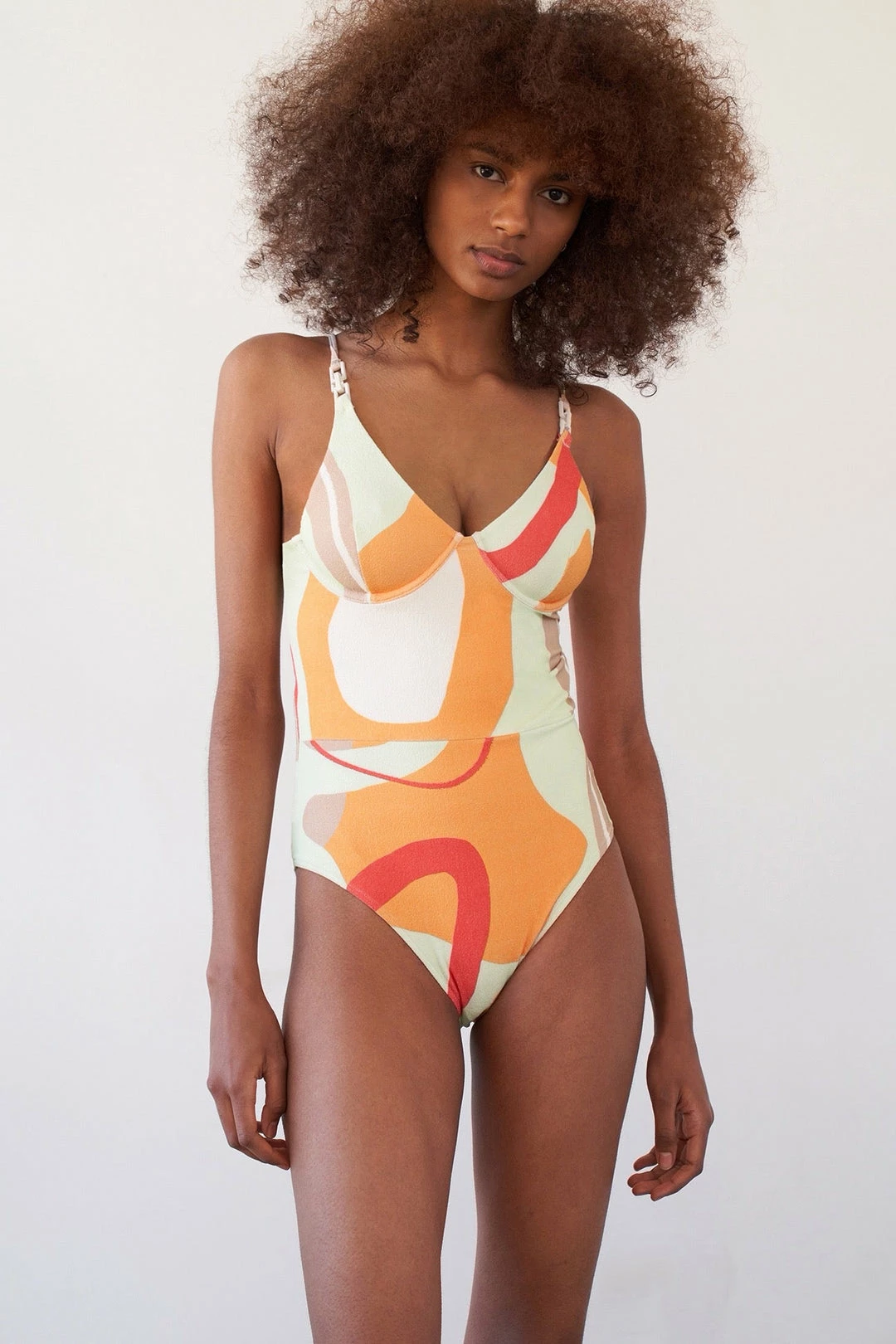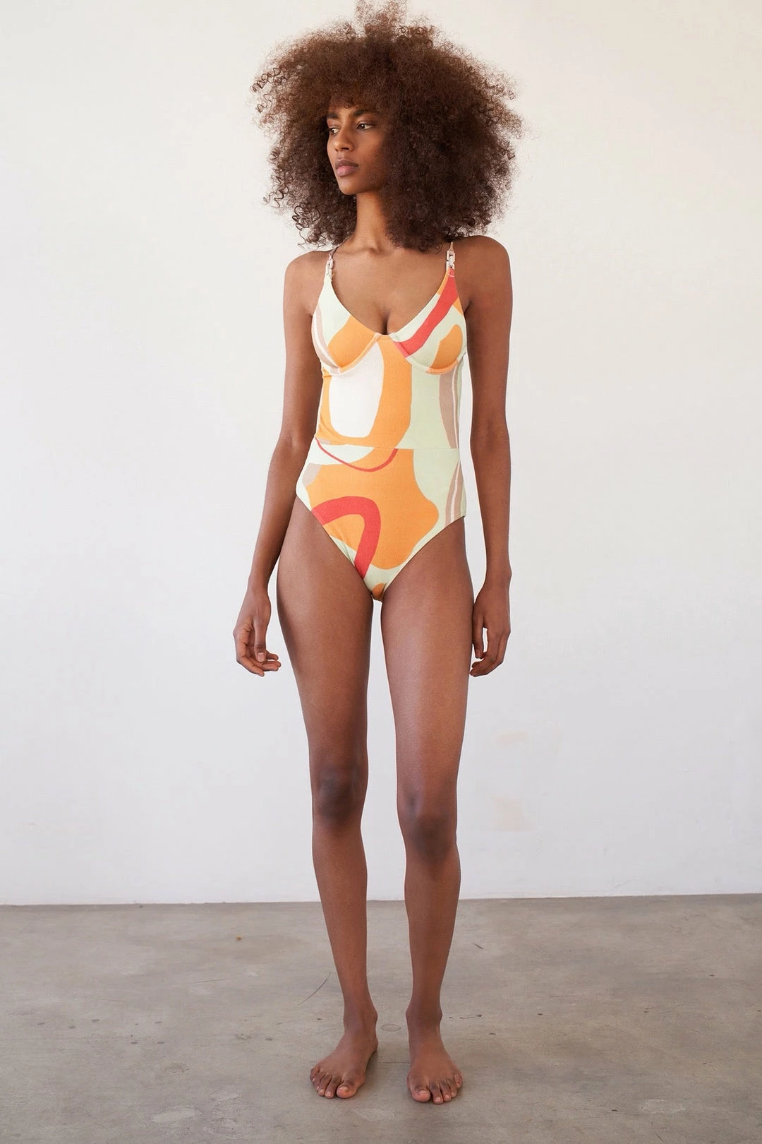 features underwire construction for support and comfort. Its custom chain hardware on the straps make this top perfect for the transition from beach to bar. We love to pair it with a maxi skirt or under an oversized button-down.