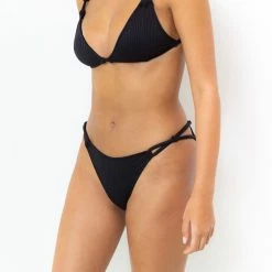 The Mira Bottom is our choice little black bikini of the season. We’ve embellished the traditional bikini bottom with sleek knots along the hip. Pair the Mira Bottom with the matching Mira Top.