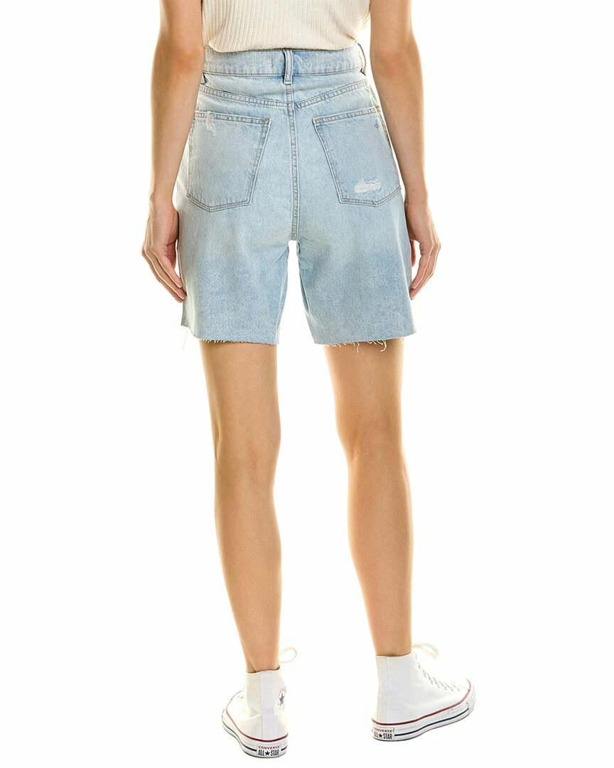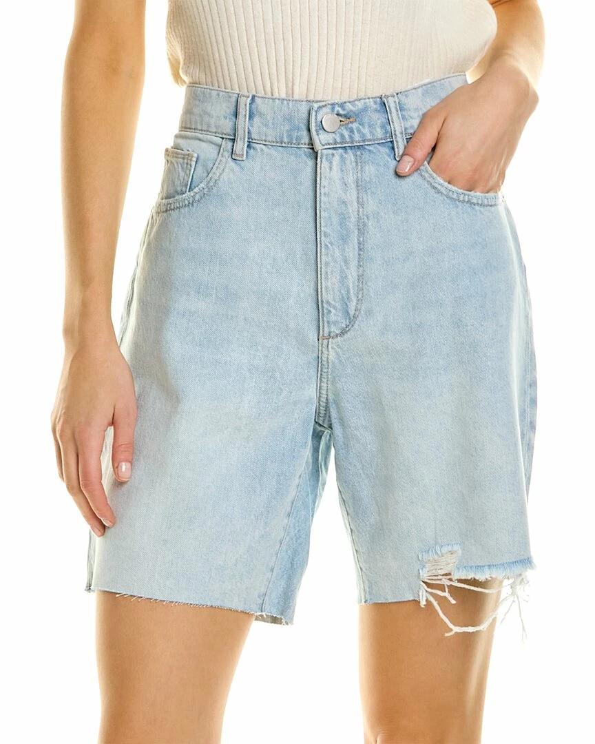 - Emilie Short In Super Light With Belt Loops, Whiskering And Fading Details, Raw Edge Hem, Distressed Detailing, And Classic Five-Pocket Styling